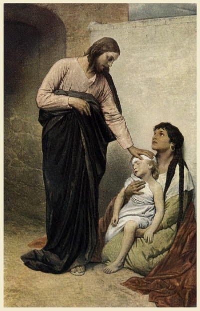 Ao entrar nacasa de Simão Pedro, Jesus vê que a sua sogra estava na cama com febre; logo a