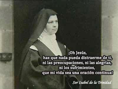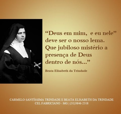 PELA INTERCESSÃO DA BEATA  ELISABETE DA TRINDADE, PEDIMOS SENHOR DEUS ,A GRAÇA DE PERSEVERAMOS NO AMOR DE CRISTO  E SERMOS TEMPLO DO ESPÍRITO DE AMOR ,PARA O LOUVOR DE SUA GLÓRIA.