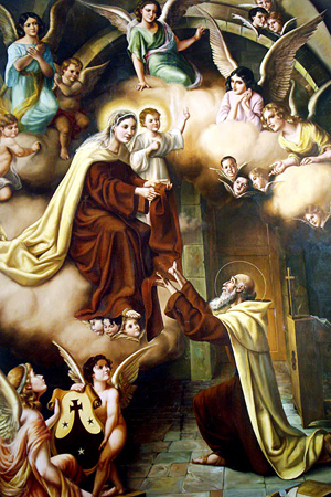 No dia 16 de Julho, enquanto o Geral reza a oração do Flos Carmeli, vê a Virgem que o anima e lhe promete ajuda, enquanto lhe entrega o Escapulário do Carmo, convidando todos a usá-lo para terem a sua proteção. A partir desta data a devoção “Mãe e Irmã dos carmelitas aumentou dentro e fora da Ordem.