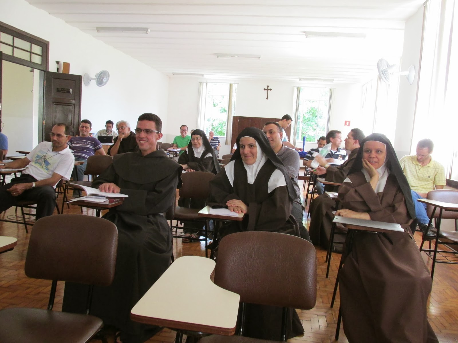 Hoje, no período da manhã, monjas carmelitas descalças e membros da OCDS apresentaram aos frades capitulares as urgências, os desafios e a beleza de nosso carisma. Pois, o Carmelo Descalço é na Igreja uma única Ordem com três formas de viver o carisma: frades, monjas e leigos (OCDS).