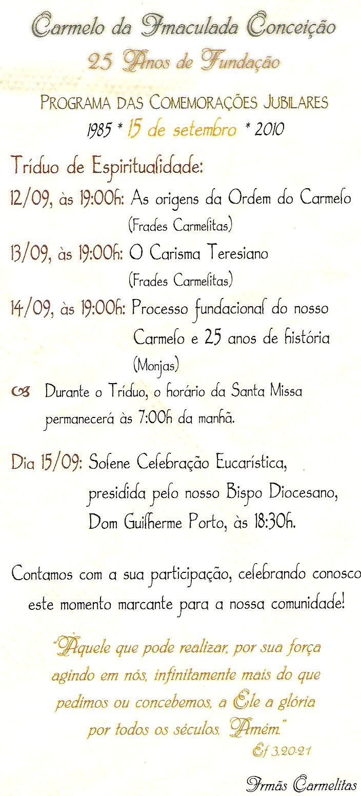 Carmelo da Imaculada Conceição “25 anos”-Sete Lagoas/MG