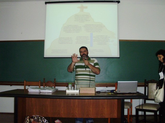 Após o almoço, escutamos a palestra de Frei Wilson Gomes com o tema: “O que não entra no meu projeto, depende do plano divino” (Edith Stein)