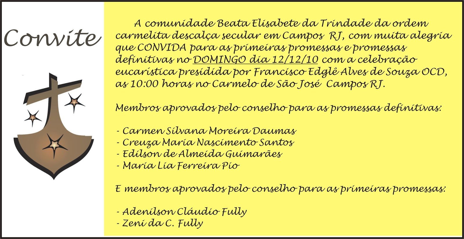 PARABÉNS E NOSSO CARINHO NESTE DIA IMPORTANTE!!!! QUE O SENHOR CONTINUE DERRAMANDO BENÇÃOS SOBRE ESTA COMUNIDADE!!!! ABRAÇOS FRATERNOS MARIA EDUARDA EM NOME DE TODA OCDS
