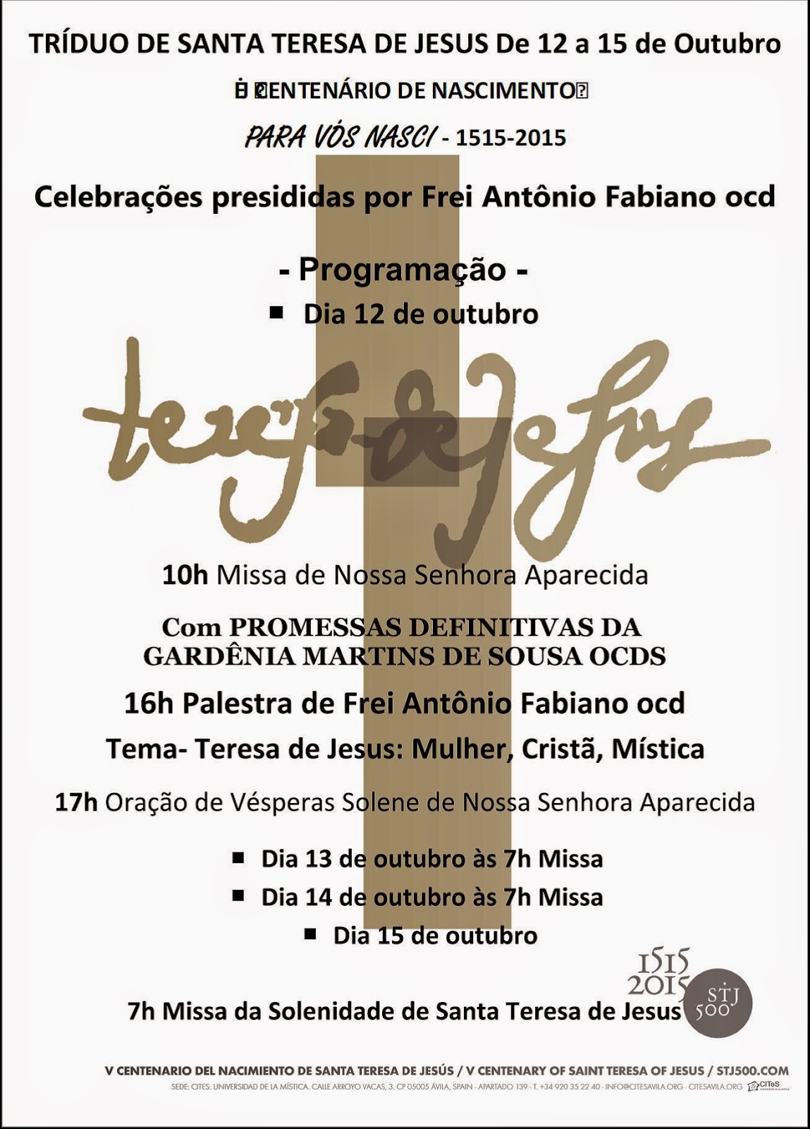 preparação à Solenidade de Santa Teresa de Jesus e Abertura do Jubileu