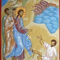 Naquele tempo, quando Jesus chegou à outra margem do lago, na região dos gadarenos, vieram ao seu encontro dois homens possuídos pelo demônio, saindo dos túmulos. Eram tão violentos, que ninguém podia passar por aquele caminho. Eles então gritaram: “O que tens a ver conosco, Filho de Deus? Tu vieste aqui para nos atormentar antes do tempo?” Ora, a certa distância deles estava pastando uma grande manada de porcos. Os demônios suplicavam-lhe: “Se nos expulsas, manda-nos para a manada de porcos”. Jesus disse: “Ide”. Os demônios saíram e foram para os porcos. E logo toda a manada atirou-se monte abaixo para dentro do mar, afogando-se nas águas. Os homens que guardavam os porcos fugiram e, indo até a cidade, contaram tudo, inclusive o caso dos possuídos pelo demônio. Então a cidade toda saiu ao encontro de Jesus. Quando o viram, pediram-lhe que se retirasse da região deles.