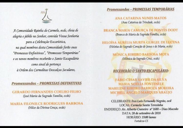 Missa com Promessas e imposição do Escapulário da Comunidade Rainha do Carmelo em 20/09/2018, Fortaleza-CE