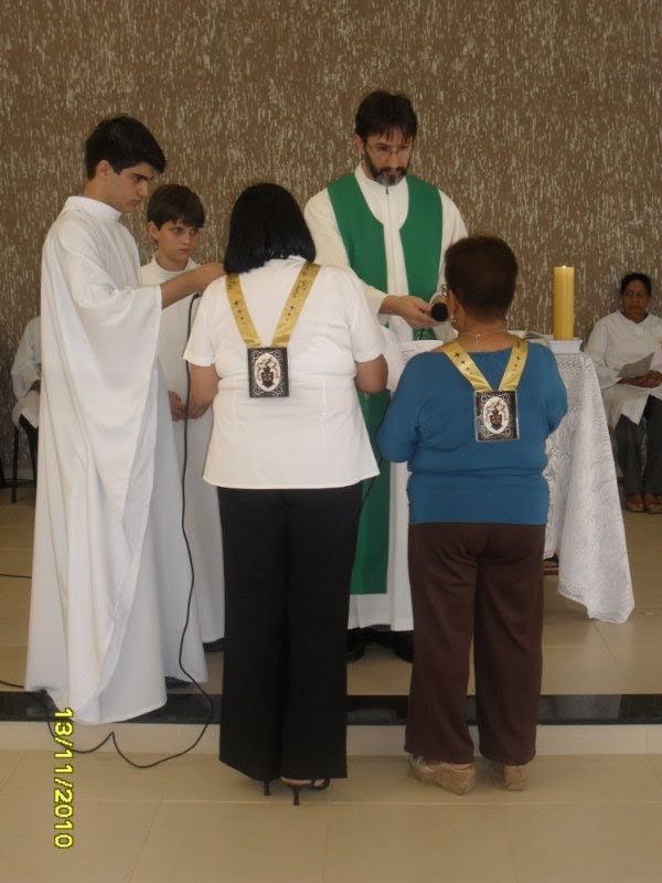 – Pelas promessas definitivas, temporárias, admissão e imposição do escapulário dos membros de nossa comunidade.