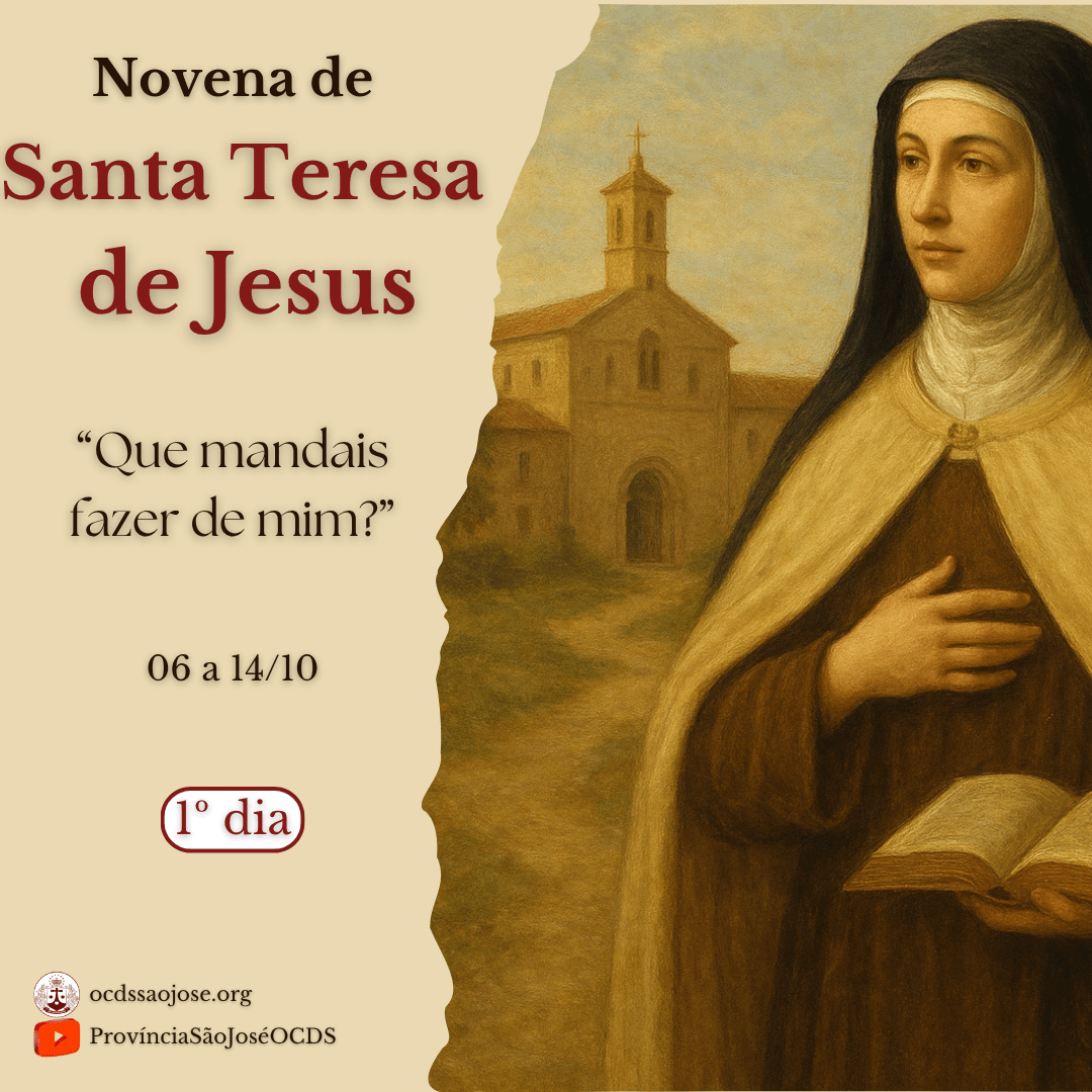 Nessa novena, convidamos você a buscar um lugar calmo e silencioso, onde você possa se concentrar, para orar com Santa Teresa de Jesus, nossa fundadora. Clame a presença do Espírito Santo rezando: