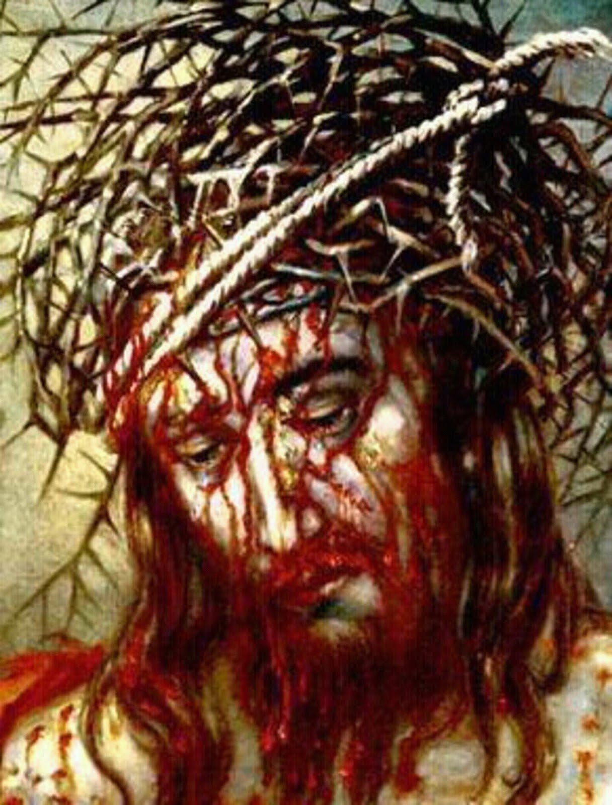 face adorável teve a cabeça coroada de espinhos, tende piedade de nós.