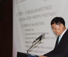 | O senhor Kapjin Cho, ocds, expõe aos presentes a história e situação da OCDS na Coréia do Sul. |