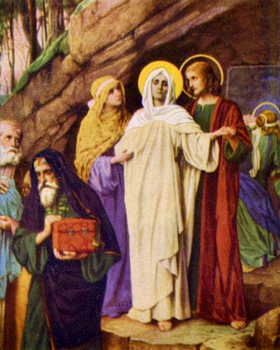 de Cleofas, e Maria Madalena. Jesus, vendo sua Mãe, e junto dela o discípulo