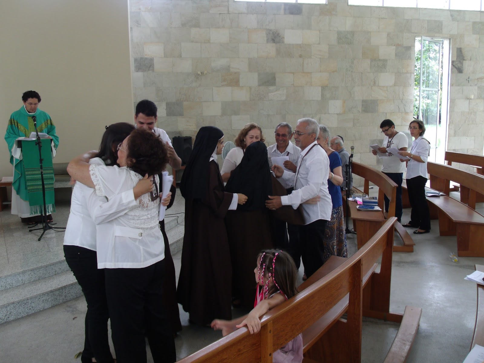 A emoção, como é de costume, sempre que sentimos a presença do Nosso Senhor Jesus Cristo, tomou conta dos Admitidos e Professos: Tiago e Serafim; Sena e Nicole; e Mônica, foram os admitidos, professos e professa definitiva, respectivamente. Três irmãs do Carmelo da Camaragibe, Ir. Mariana, Ir. Violeta e Ir. Maria José, esta última, co-fundadora da Comunidade, representaram as monjas.