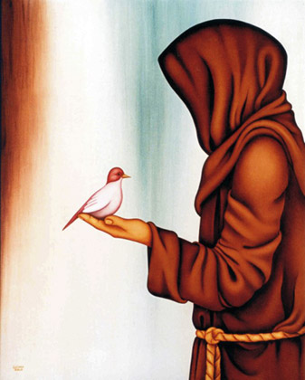 ouvir, saiu do seu convento e foi prostrar-se junto do sítio onde a avezinha