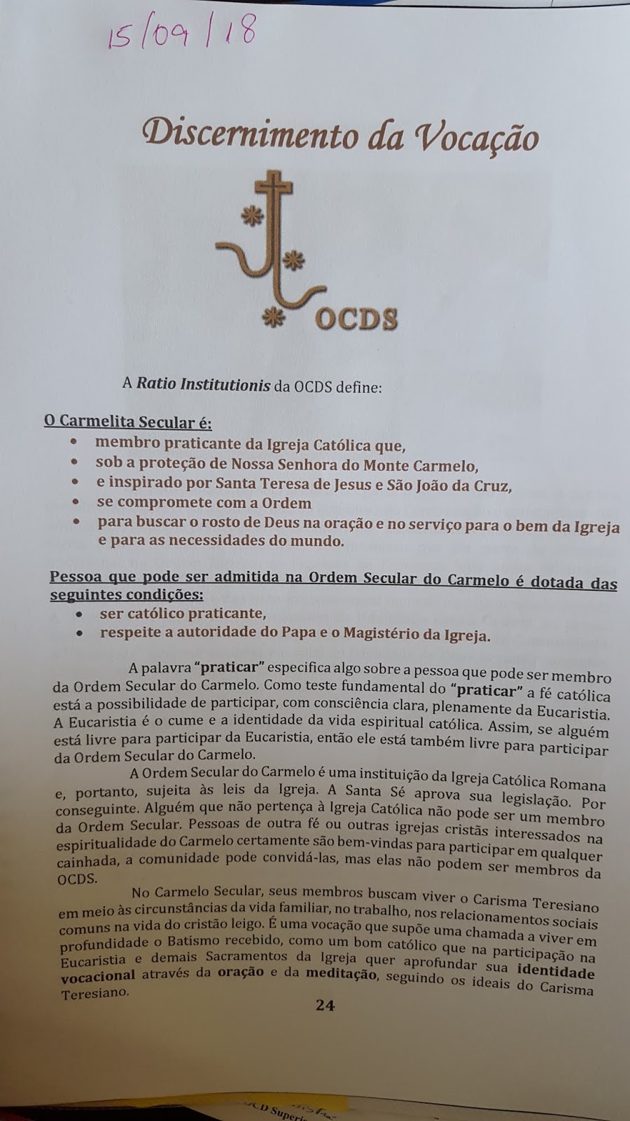 Reunião da Comunidade Rainha do Carmelo em 15/09/2018, Fortaleza-CE