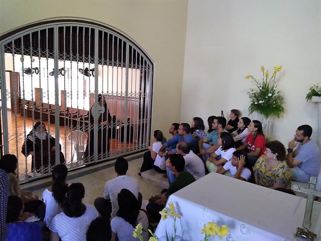 Após a Missa do Carmelo, houve a oração das Laudes, seguindo-se de uma conversa com a Ir. Maria José e Ir. Cândida, as quais falaram um pouco da Ordem do Carmelo e da família carmelitana.