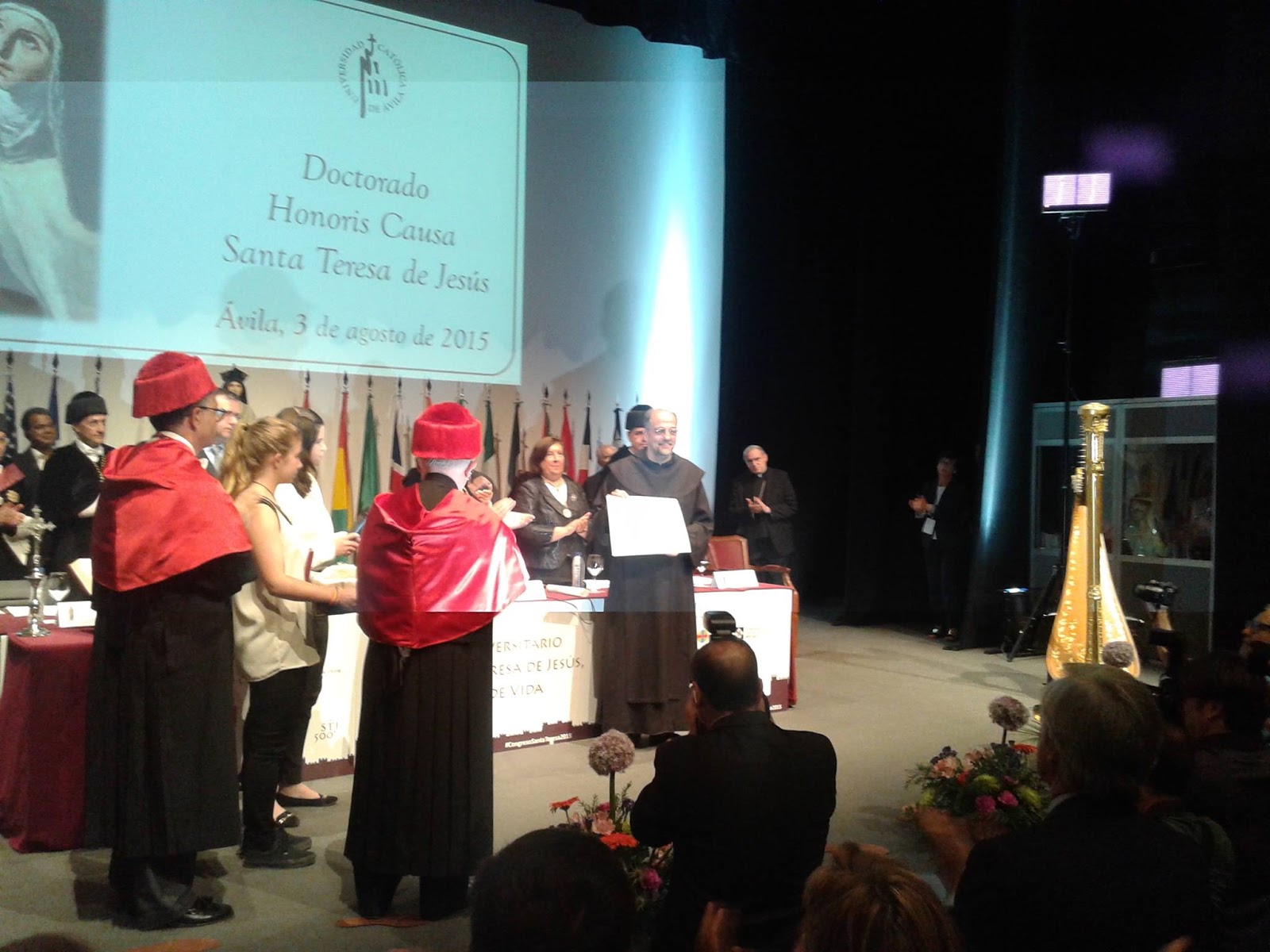 Santa Teresa de Jesus foi proclamada hoje Doutora Honoris Causa pela Universidade Católica de Ávila, na Espanha. O diploma, o barrete e a medalha de Teresa Doutora foram entregues ao Padre Geral da Ordem dos Carmelitas Descalços, Frei Savério Canistrà, ocd.
