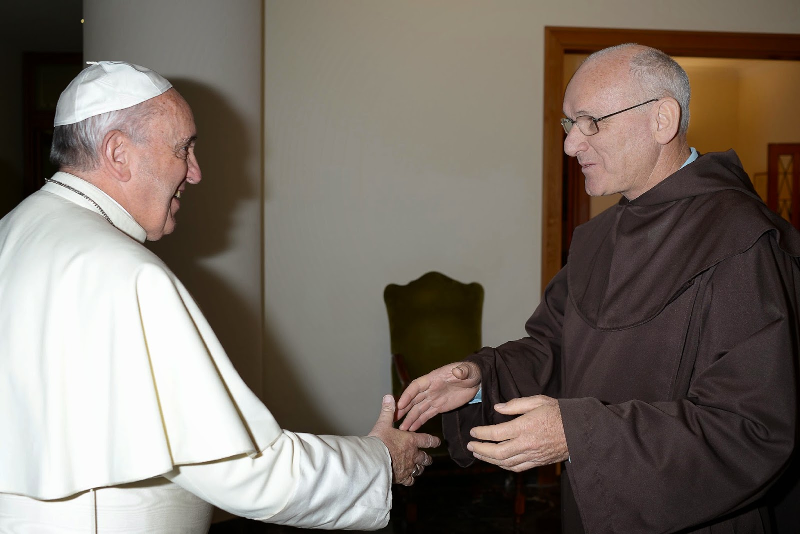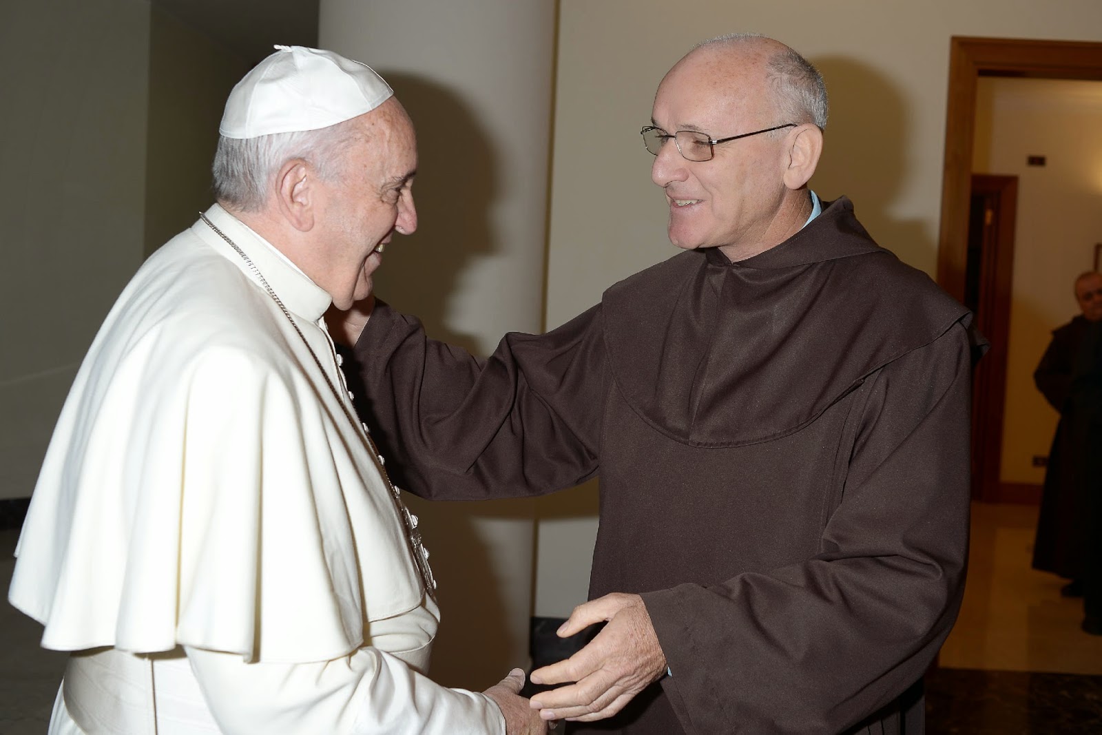 | Santo Padre Francisco e o Definidor Geral para a América Latina e Caribe, Frei Marcos Juchem Júnior, ocd. |