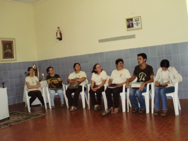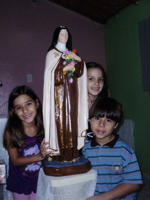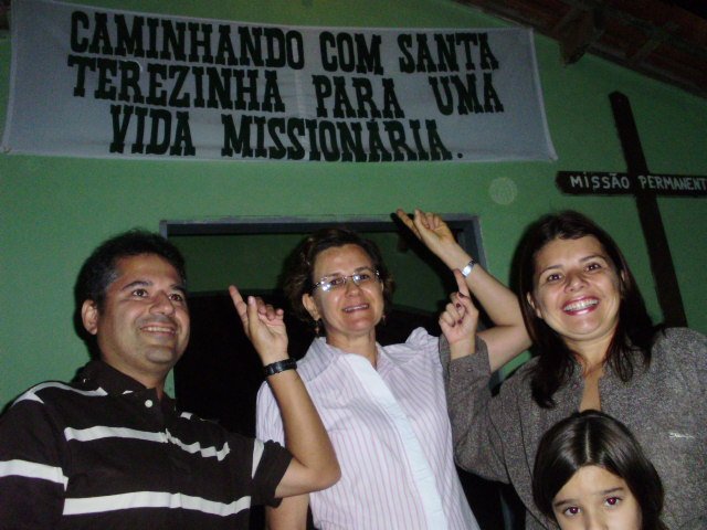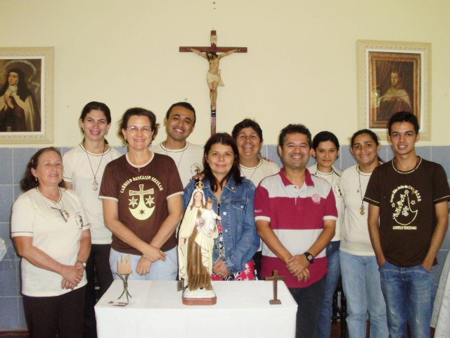 Às 19:00h, participamos da Celebração da Palavra na Capela dedicada a Santa Teresinha do Menino Jesus. Fomos acolhidos com muito amor pela comunidade local. Da esq.p/dir., Maria do Carmo, Paulo, Emiliana, Ana Stela, Luciano, Ruth, Ariane e as crianças, Jonas e Liana.Os mais novos Carmelitas, Liana, Lia e Jonas:Luciano, Ruth e Ana Stela:Para nossa surpresa, encontramos essa frase na entrada da Capela, ficamos muitos felizes por ver Santa Teresinha levando sua doutrina em todos os lugaresNo domingo, dia 30/10/11, nos reunimos na sala de encontros usada pelo Grupo São João da Cruz, para Oração das Laudes e formação.Todos nós presentes, tivemos a oportunidade de falar sobre como conhecemos o Carmelo Secular e como está nossa caminhada até agora, quais os nossos anseios e dificuldades. Após esse momento de partilha, Luciano fez uma explicação de toda a estrutura da Ordem Carmelita.Fizemos uma pausa para o lanche e em seguida repassamos o Congresso Provincial que aconteceu de 13 a 16 de outubro em São Roque. Ruth partilhou de sua alegria em conhecer a vida do Frei Tito Brandsman. Concluimos nossa manhã de domingo com a palavra do Presidente do Grupo São João da Cruz, Paulo, agradecendo nossa presença e apoio. Luciano, Conselheiro Provincial fez suas considerações finais e se colocou disponível para qualquer dúvida e ajuda necessária. Na foto abaixo, Ma. do Carmo, Emiliana, Ana Stela, Paulo, Ruth, Ana Maria, Luciano, Ariane, Márcia e André. Que todos os Santos do Carmelo intercedam por esse Grupo São João da Cruz, que eles cresçam em graça e sabedoria diante de Deus e de toda a Igreja militante, que sejam sal da terra e luz do mundo. Nossa Mãe e Rainha do Carmelo os conduzam a sempre fazer a vontade de Nosso Rei e Senhor.