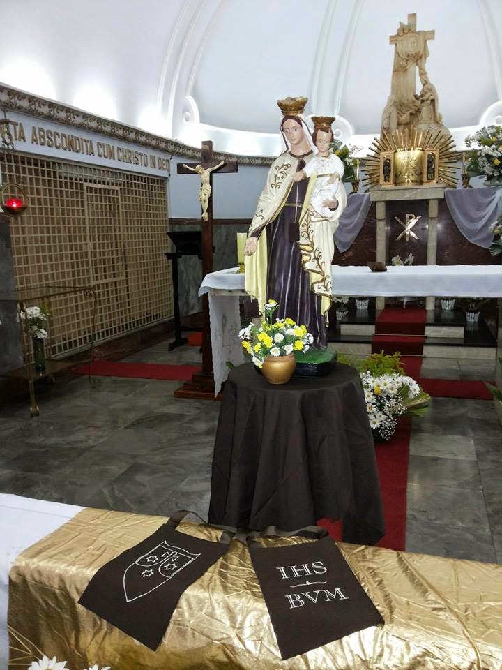Altar preparado para receber o Momento Mariano: oração da Coroa da Imaculada e meditação sobre o Santo Escapulário do Carmo. |