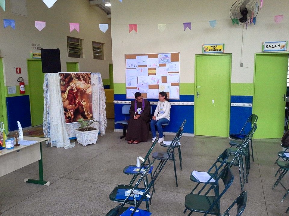 | Frei André colocando-se disponível para ouvir confissões… |