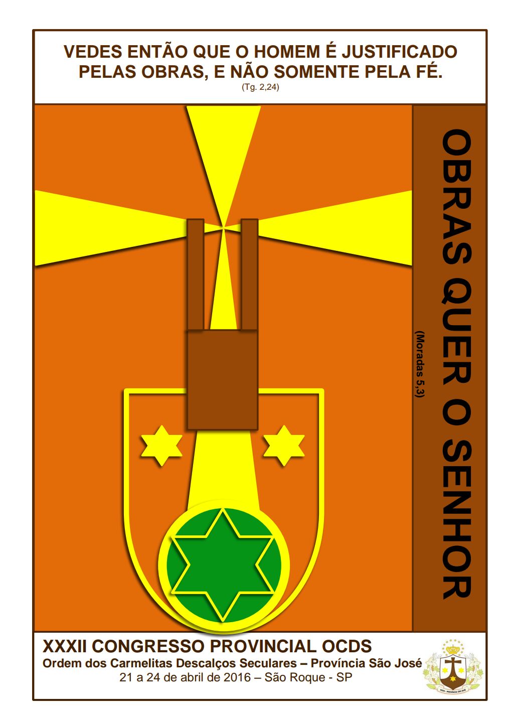 Aconteceu de 21 a 24/04/2016 o XXXII Congresso Provincial OCDS, no Centro Teresiano de Espiritualidade, em São Roque-SP. O Congresso teve como tema “OBRAS QUER O SENHOR” (5M, 3 , 2) e como lema “Vedes então que o homem é justificado pelas obras, e não somente pela fé” (Tiago 2, 24).